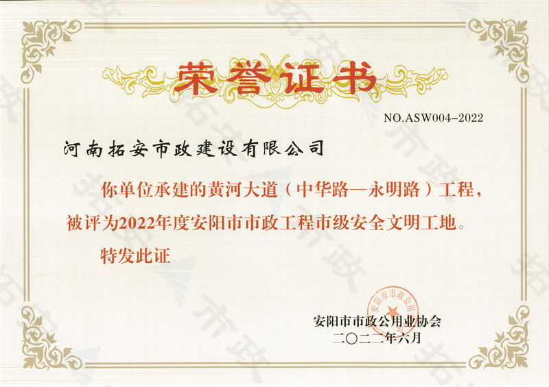 黃河大道(中華路-永明路)工程市及安全文明工地