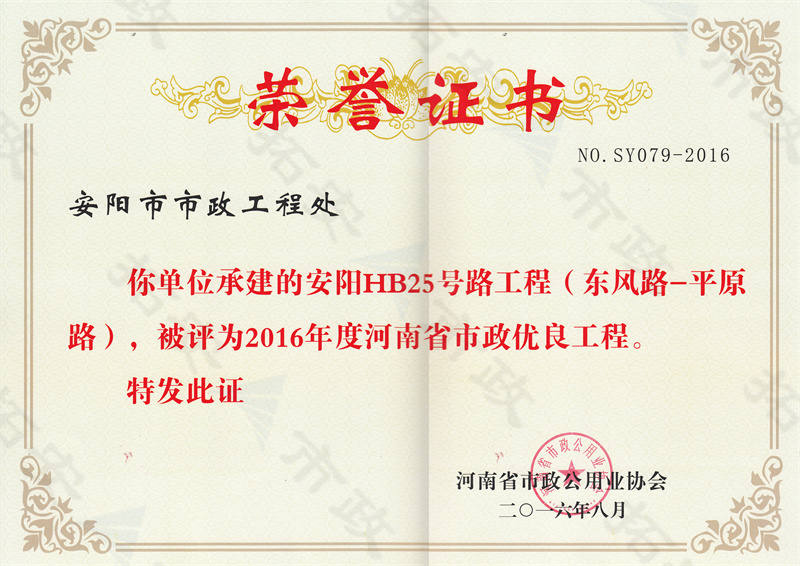 HB25號路(東風(fēng)路-平原路)工程省優(yōu)