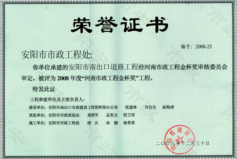南出口道路工程金杯獎